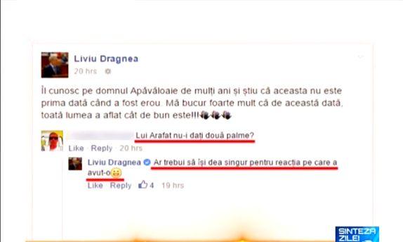 ”Ar trebui să își dea singur (două plame - n.r.) pentru reacția pe care a avut-o”, a scris Dragnea, într-un comentariu pe Facebook.