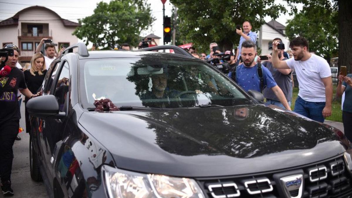 El a fost aşteptat la Penitenciarul Rahova de mai multe persoane care l-au huiduit. Ei au strigat "Hoţule!", "La puşcărie!".