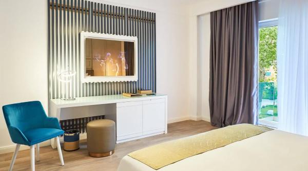 • Camera executive cu balcon, cea mai vanduta camera a hotelului este in perioada verii disponibila la preturi incepand cu 162€/noapte, mai multe detalii la receptia hotelului.