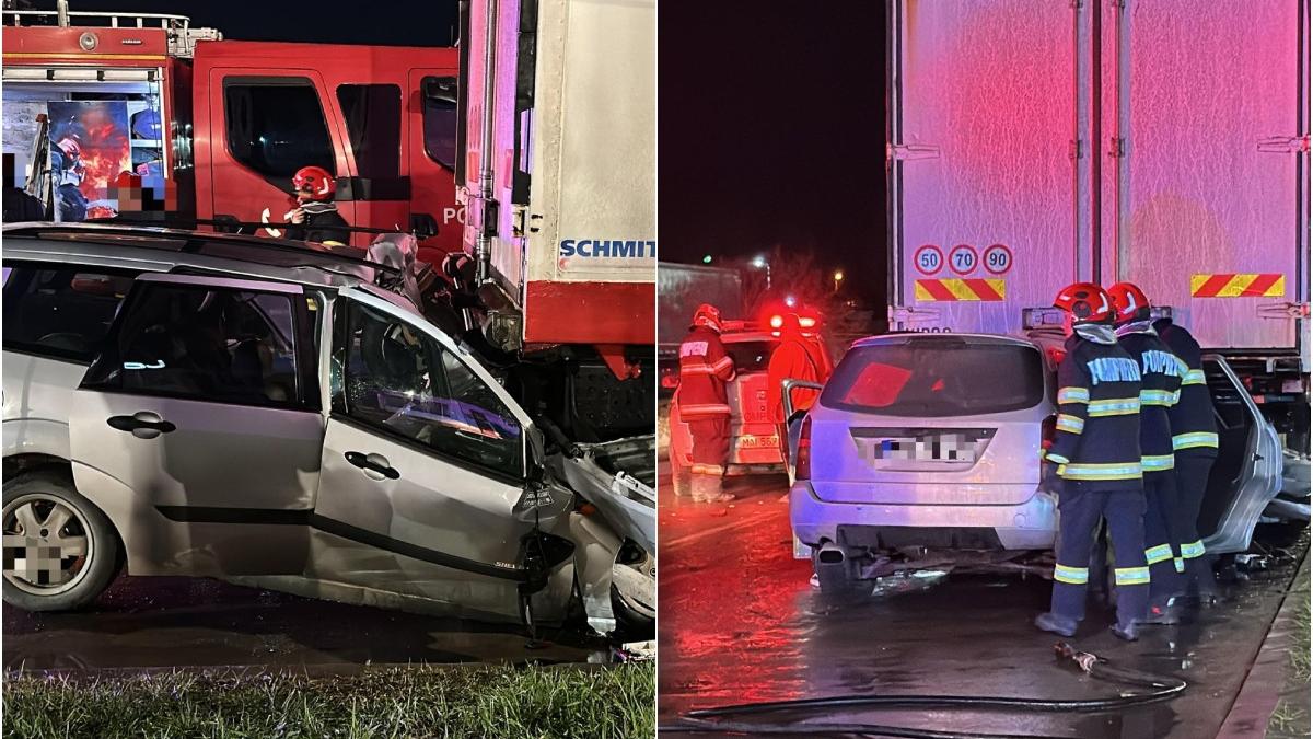 Un tânăr de aproximativ 19 ani, care avea permis de doar o lună, a intrat cu mașina sub un TIR staționat.
