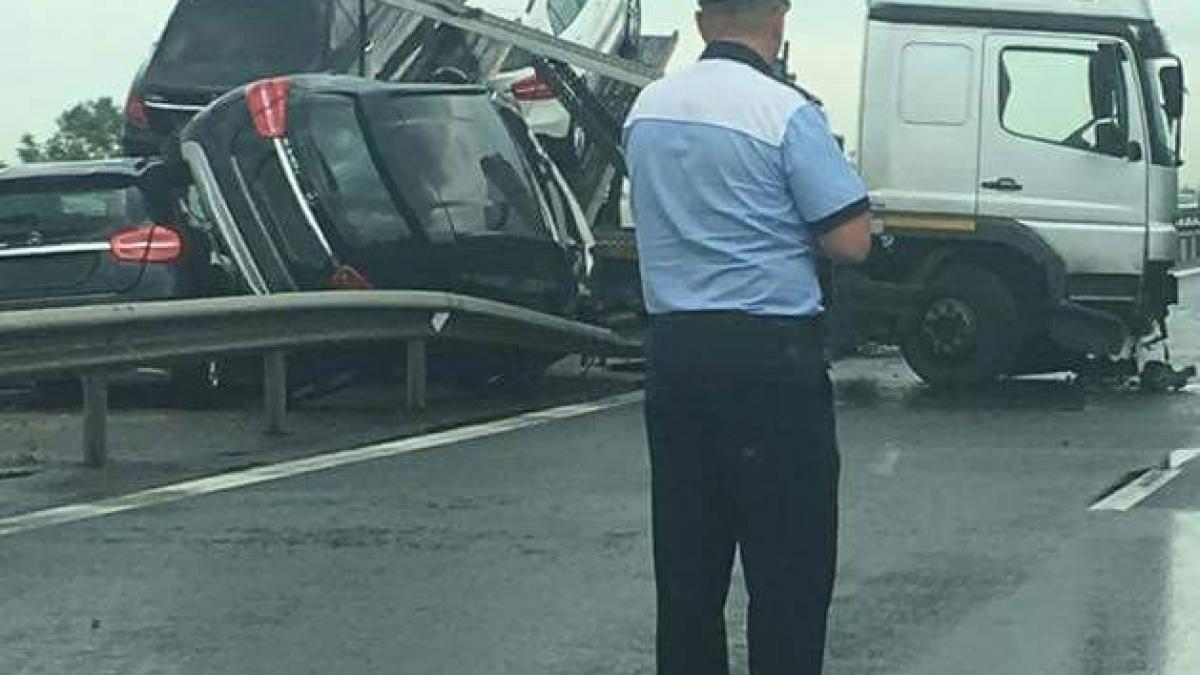 Centrul INFOTRAFIC din Inspectoratul General al Poliţiei Române informează că, începând cu ora 16:15, pe autostrada A1, pe sensul de mers Bucureşti - Piteşti, la kilometrul 20, traficul rutier se opreşte în mai multe reprize de câteva minute, pentru coborârea unor autoturisme de pe o autoplatformă. Amintim că un autotren care transporta autoturisme a pătruns în glisiera mediană, iar banda a doua s-a blocat. Accidentul nu s-a soldat cu victime.