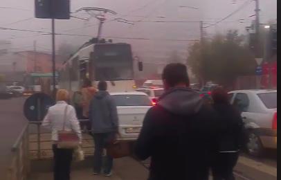 Mai precis, femeia mergea nonșalant cu mașina pe linia de tramvai, după ce depășise coloana de mașini pe contrasens, când a dat peste un tramvai aflat pe traseu. Cum era blocată, femeia s-a dat jos din mașină și a început să se certe cu vatmanul.