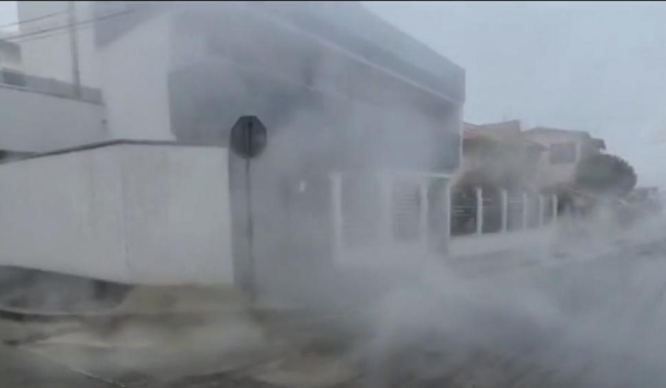 Apa fierbinte a inundat toată strada şi a îngreunat circulaţia.