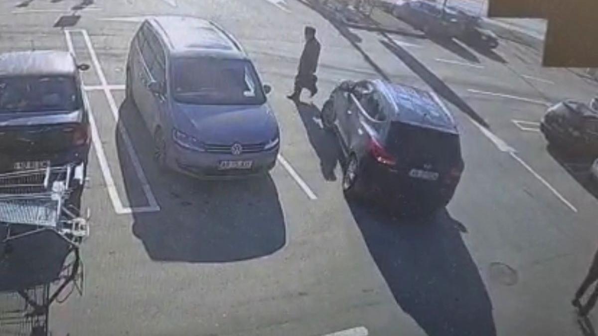 Pe imagini se poate observa cum pietonul merge prin parcare, în timp ce şoferul pleacă de pe loc şi încearcă să vireze la stânga, fără să îl observe pe bărbatul care mergea prin parcare.