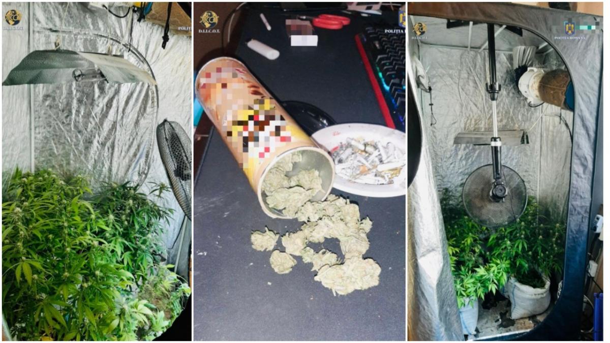 Astfel, în urma a 2 percheziții domiciliare, polițiștii au descoperit și ridicat, în vederea indisponibilizării, 11 plante de cannabis, în cantitate totală de aproximativ 2 kilograme, aproximativ 150 de grame de muguri de cannabis, un recipient din sticlă, care conține aproximativ 20 de grame de cannabis, 3 recipiente, care conțin urme de fragmente vegetale cu aspect de cannabis, aproximativ 250 de mililitri de ulei de cannabis, 30 de semințe de cannabis, 30 de kilograme de îngrășământ și 15 litri de substanțe lichide pentru accelerarea procesului de creștere a plantelor.