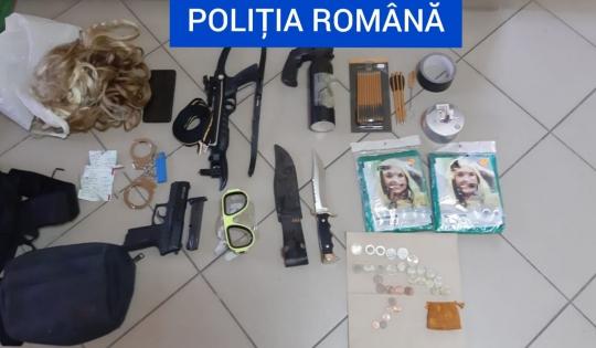 În apropierea barului în care îi ameninţa pe oameni cu pistolul, poliţiştii au găsit un rucsac în care acesta avea o arbaletă, 13 săgeţi, o pereche de cătuşe, un spray iritant-lacrimogen, o perucă, dar şi două bidoane în care avea acid clorhidric şi acid sulfuric.