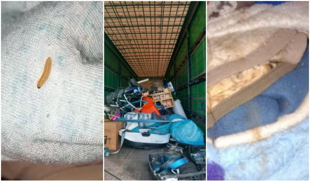 Numai că hainele, încălţămintele şi celelalte produse erau murdare, nedezinfectate. Mai mult, în timpul verificărilor, comisarii au făcut și o descoperire dezgustătoare: un transport, destinat Parohiei Romano-Catolice Butea (judeţul Iaşi), era plin de viermi vii, care se târau printre mai multe pături.