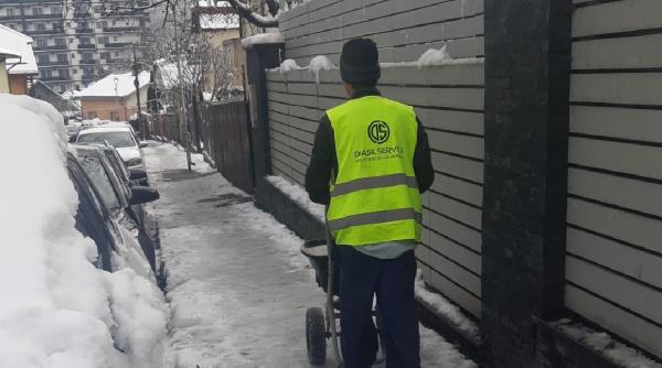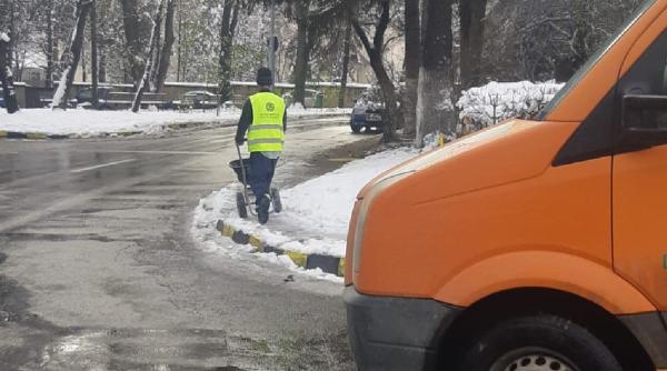 Pe străzile din oraş, dar şi pe trotuare, autorităţile locale au intervenit cu utilaje de deszăpezire, dar şi muncitori care au împrăştiat material antiderapant.