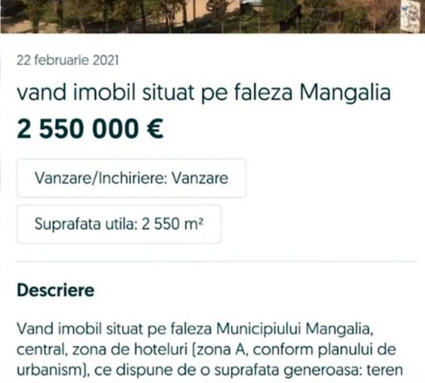 ''Vreau sa aduc niste precizari pentru a scoate adevarul la lumina, provacand totodata presa si jurnalistii de buna credinta sa verifice informatiile pe care le primesc "pe surse", neraspunzand cu "sa traiti!" la comenzile politice. Astfel ca: imobilul a fost cumparat printr-o procedura legala (licitatie de executare), la care poate sa participe orice cetatean, iar pretul de adjudecare a fost mult mai mare decat cel comunicat "pe surse – 300.000 sau 310.000 Euro", ca urmare a numarului mare de supralicitari care s-au facut; un alt neadevar comunicat de presa tot "din surse" este cuantumul chiriei de "10.000 sau 11.000 Euro), astfel asa cum spune si hotararea instantei, conform legii 165/2013 art. 45, proprietarul este obligat sa pastreze utilitatea publica a imobilului pana in 2027 si sa beneficieze de plata unei chirii ce este stabilita de aceeasi lege si care este mai mica decat jumatate din cei 10.000 Euro, cuantumul acesteia fiind stabilit printr-un raport de evaluare comunicat Primariei Mangalia, deci nu cum a spus dl. Viceprimar "noul proprietar poate solicita autoritatii locale care il foloseste o chirie". De asemenea vreau sa informez cetatenii de buna credinta ca am incercat inca de la inceput sa stabilesc o relatie de buna colaborare cu Primaria Mangalia, comunicandu-i personal d-lui Primar si reprezentantilor acestuia acest lucru si faptul ca sunt de acord cu mentinerea functiunilor existente si dupa 2027, numai ca dansii nu sunt interesati de incheierea contractului de inchiriere prezentat inca din 08.10.2020, si intrarea in legalitate. In sustinerea celor afirmate si rezolvarea situatiei, am depus numeroase documente atat la autoritaltie locale (Primaria Mangalia, Spitalul Municipal Mangalia) cat si la Prefectura Constanta si Guvern (Corpul de control al Primului Ministru). Deoarece autoritatile locale refuza sa respecte legea, considerandu-se deasupra acesteia, iar acesta situatie aducandu-mi un grav prejudiciu am luat hotararea de a vinde acest imobil (acesta fiind un drept al proprietarului), dar nu inainte de informa Primaria Mangalia, respectand dreptul acesteia la preemtiune si a-i comunica ca poate sa o cumpere la pretul de 900.000 Euro, insa oferta a fost refuzata de dl. Primar (document inregistrat). In contiunuare vanzarea se va face pe piata imobiliara libera. Mentionez inca odata ca in sustinerea celor prezentate exista numeroase documente inregistrate la autoritati si ca este corect ca acestea sa prezinte presei si cetatenilor lucrurile asa cum sunt.