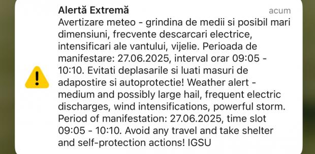 Locuitorii din Timișoara au primit mesaj Ro-Alert.