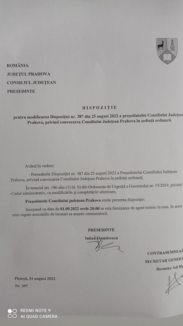 În urma apariţiei în spaţiul public al unui înscris care conţine, în antet, stema judeţului Prahova, precum şi semnături atribuite preşedintelui Consiliului Judeţean (CJ), Iulian Dumitrescu, şi secretarului general al judeţului Prahova, Hermina Adi Bîgiu, precizăm că este un FALS.