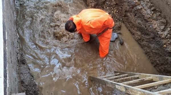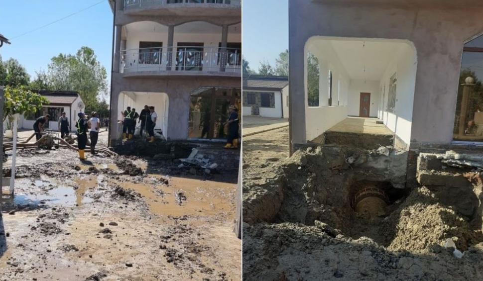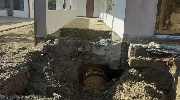 Totul s-a întâmplat sâmbătă, în comuna Țânțăreni din judeţul Gorj, acolo unde un localnic şi-a construit o vilă cu două etaje, fără autorizaţie, chiar peste conducta cu apă care alimentează municipiul Craiova.