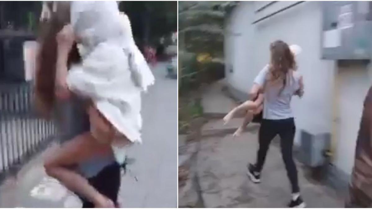 Tânăra femeie a fost văzută alergând, cu o fetiță aproape dezbrăcată în brațe, spre stupoarea trecătorilor. În timp ce alerga, femeia bolborosea cuvinte care sunau a descântec.
