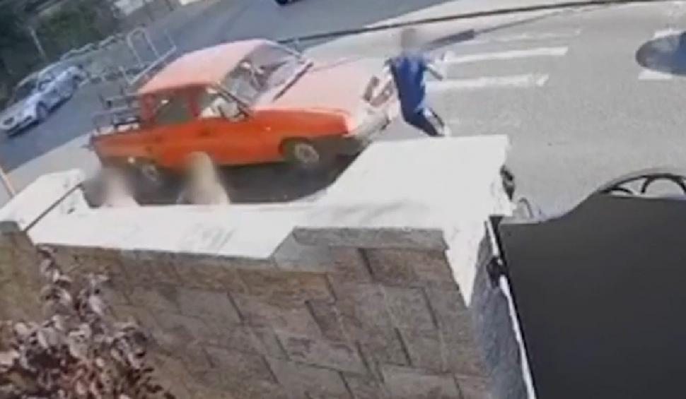 Unul dintre puști se asigură din dreapta și începe să traverseze, însă este lovit de autoturismul care venea în viteză din stânga. Copilul a fost preluat de un echipaj medical.