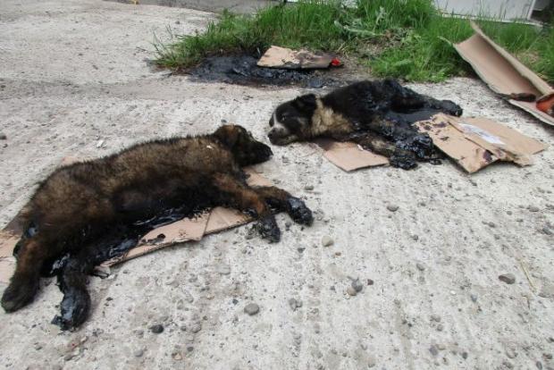 Imaginea cu cei patru pui de cățel băgați în smoală, aici. Atenție, fotografia vă poate afecta emoțional!