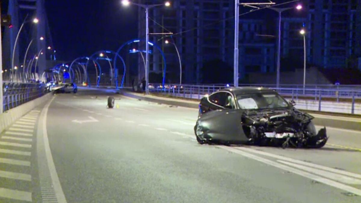 În urma impactului, o mașină ricoșat în gardul de protecție al pasajului.