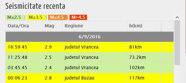 La 16.59, al treilea cutremur s-a produs în județul Vrancea. A avut loc la adâncimea de 81 km şi a avut magnitudinea 2,9.