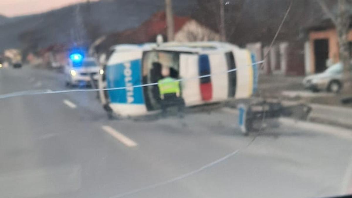 „În această dimineață, pe DN 68, la km 21, pe raza orașului Oțelu Roșu, s-a produs un accident rutier în care a fost implicată o autospecială de poliție. În urma evenimentului cei doi polițiști de la Poliția Orașului Oțelu Roșu care se deplasau cu autospeciala au fost transportați la spital.
