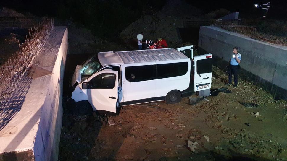 Autoutilitara a plonjat de la aproape 4 metri înălțime, într-un canal colector de apă, în localitatea Gârdani, județul Maramureș. În mașină se aflau cinci bărbați, cu vârste cuprinse între 18 și 36 de ani, care au suferit mai multe răni.