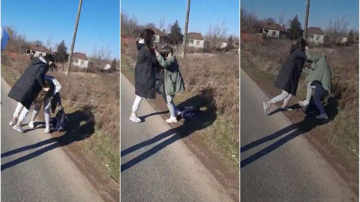 Pe imagini se vede cum mai mulți martori filmează și se amuză, în timp ce una dintre fete este bătută fără milă şi trasă de păr, de cealaltă adolescentă, pe marginea drumului.