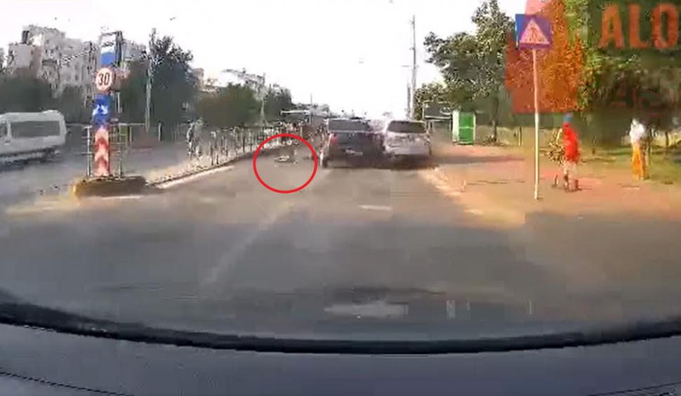 Momentul în care o fetiţă este lovită de o maşină pe o trecere de pietoni din Iaşi poate fi văzut AICI.