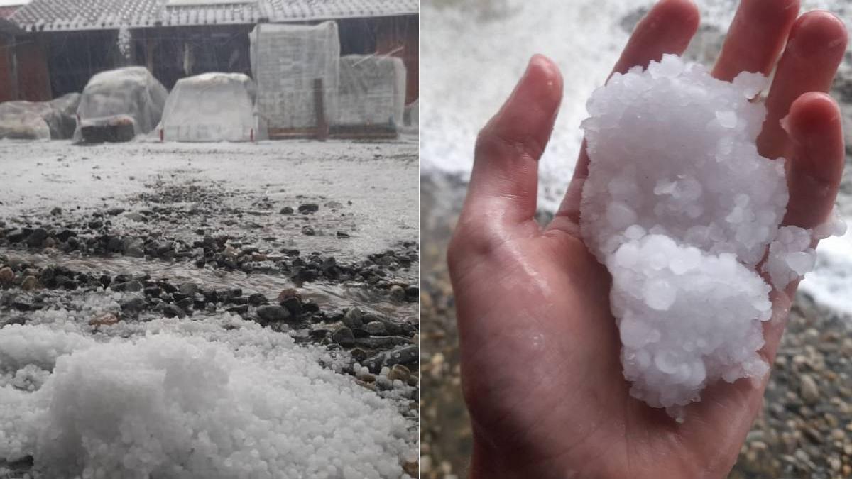 "Urmările unei furtuni locale cu caracter sever! În aproximativ 30 de minute, căderile însemnate de grindină de mici dimensiuni au adus primul strat de "omăt" al sezonului peste meleagurile montane!", a scris un localnic, pe Facebook.