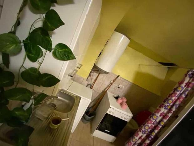 Din lipsă de spațiu, proprietarul a îngrămădit totul, așa cum a putut. Toaleta este la comuna cu camera și bucătăria, iar mirosurile nu prea au pe unde să iasă, decât pe ușa de intrare.