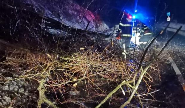 Mai mulţi copaci au fost doborâţi pe drumurile din judet, fiind nevoie de intervenţia ISU pentru degajarea lor de pe carosabil.