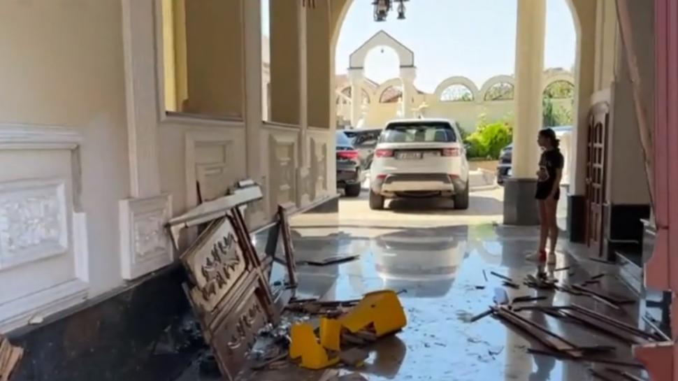 Pe lângă faptul că au distrus uşa şi au distrus totul în cale, se pare că aceştia au atuncat inclusiv cu bucăţi de beton care ar fi putut să îi rănească pe cei care locuiesc aici.