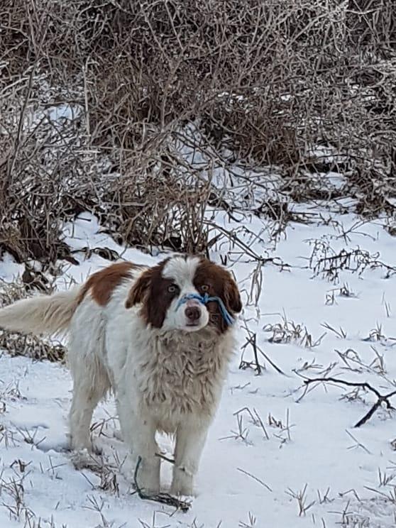 O femeie a povestit pe un grup de pe Facebook că l-a întâlnit pe patruped în apropiere de Topolog, pe DN 22A. Acesta era legat cu sfoară din rafie la bot și de picioare.
