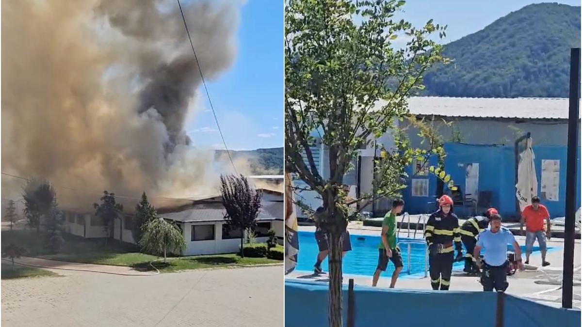 Incendiu la un restaurant renumit din Horezu, Vâlcea. Pompierii sting flăcările cu apa dintr-o piscină
