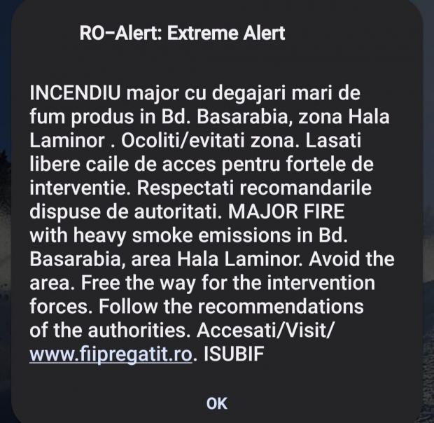 Știrea inițială: Din cauza degajărilor foarte mari de fum, a fost remis un mesaj RO-ALERT pentru informarea și avertizarea populației din zonă.