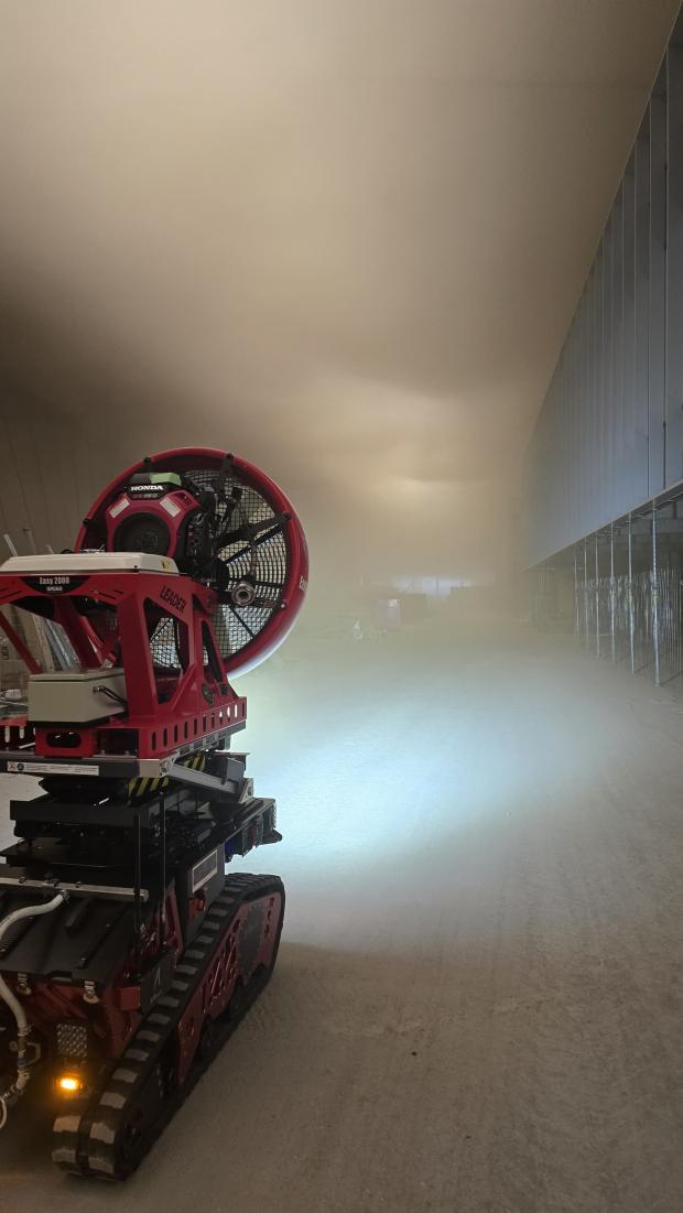 Sunt în continuare degajări mari de fum, atât în exterior, cât și în Hala Laminor. Se folosesc ventilatoare pentru evacuarea fumului.
