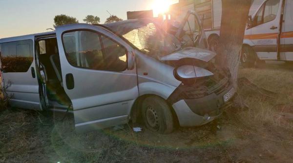 Microbuz cu muncitori distrus într-un copac, accident grav în zona Pădurea Sarului din Olt