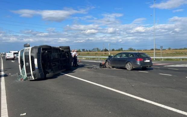 Microbuz plin cu pasageri răsturnat. A fost activat Planul Roșu de intervenție