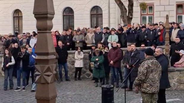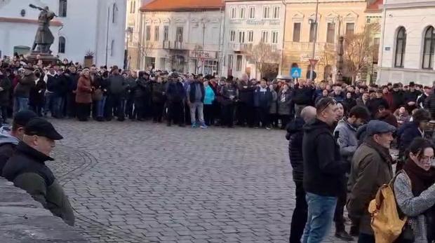 Protestatari s-au strâns în centrul orașului cu pancarte în limbile maghiară și română.