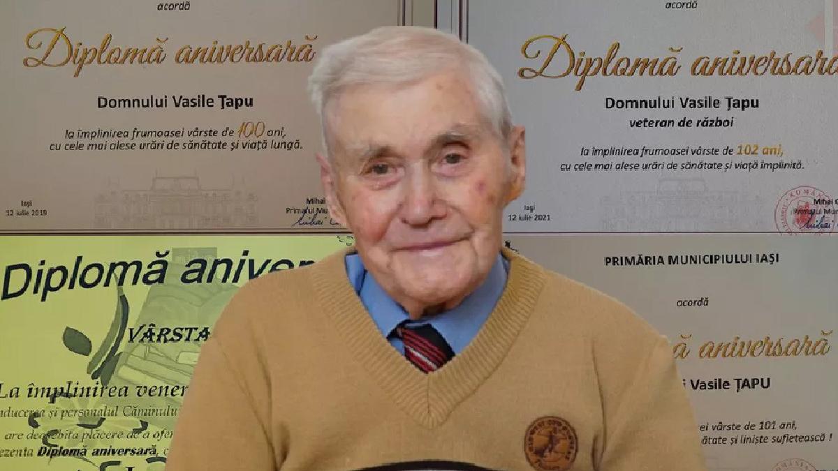 Vasile Țapu este cel mai vârstnic beneficiar al Căminului de Pensionari „Sfânta Cuvioasă Parascheva” din Iași, iar întreaga echipă a centrului îl privește ca pe un exemplu.