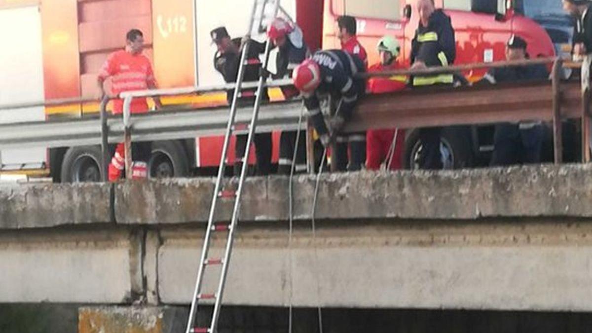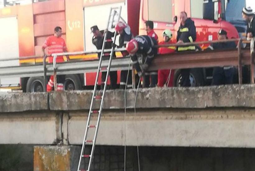 Şoferul, un bărbat în vârstă de 20 ani, s-a autoevacuat din vehicul şi a rămas izolat aproape 10 ore pe capota cabinei, cu membrele inferioare în apă.