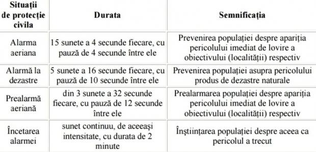 - Semnificație: Prealarmarea populației despre apariția pericolului imediat de lovire a obiectivului (localității) respectiv