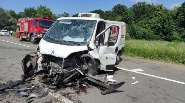 Atât cei doi soţi, cât şi şoferul autoutilitarei au rămas blocaţi în maşină, fiind grav răniţi.