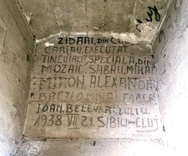 "Zidari din Cluj cari au executat tincuiala specială din mozaic. Sabău Mihai, Miron Alexandru, Breczlo Mihai Farcaș, Ioan (indescifrabil) Iuliu. 1938 VII 21. Sibiu – Cluj", este mesajul descoperit la Sibiu în timpul pregătirilor pentru demolarea podului.