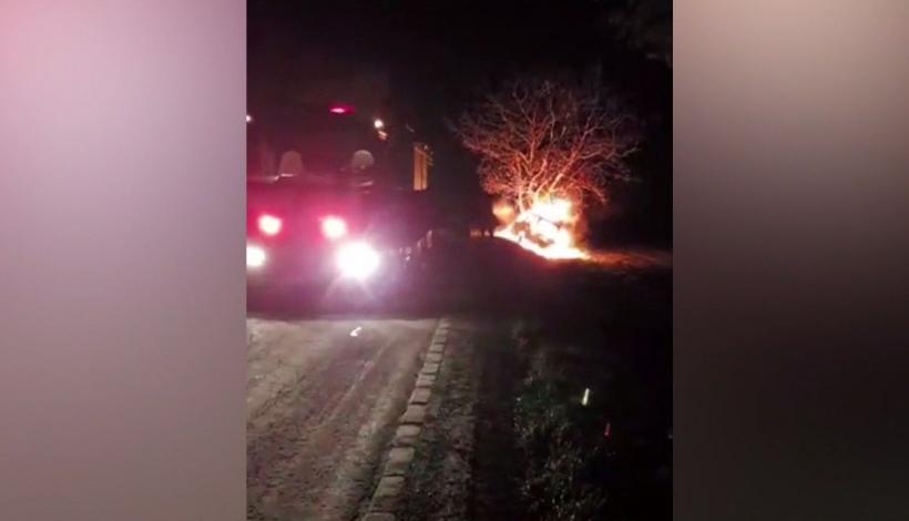 Tragedie în localitatea botoşăneană Truşeşti! Un autoturism a luat foc după ce s-a izbit violent de un copac de pe marginea drumului.