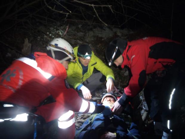 Update 00:17. Echipa Salvamont din Băile Herculane a recuperat un alpinist rănit, după ce căzut în gol peste 20 de m