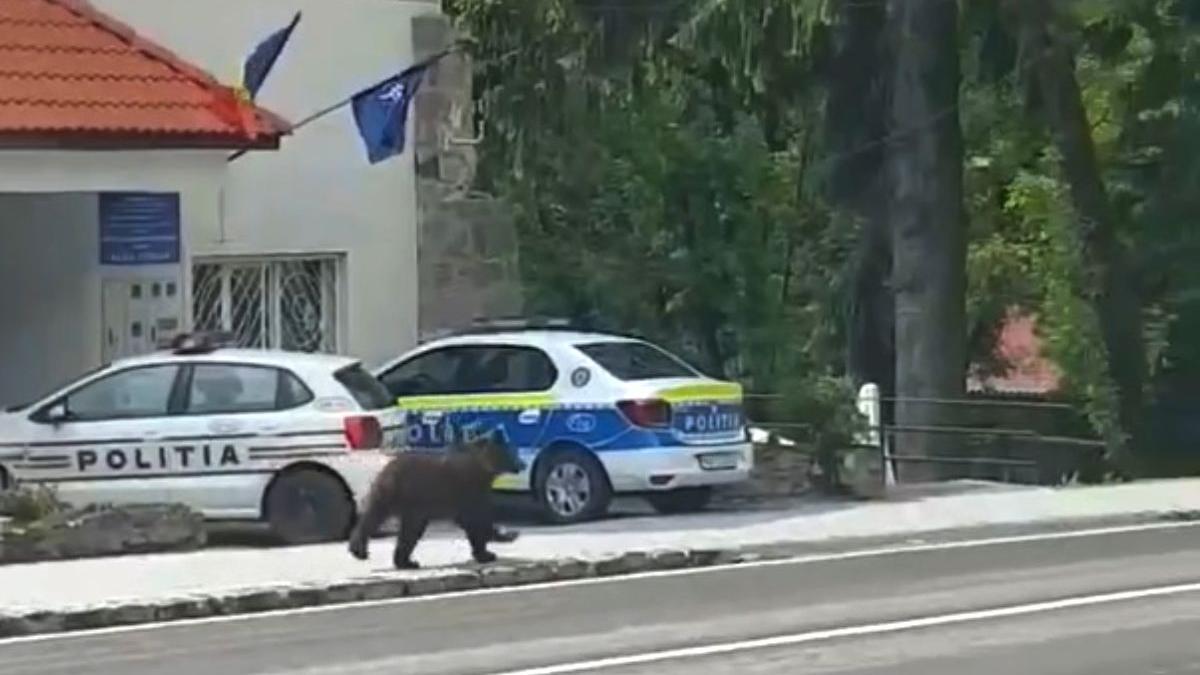 Urs filmat în faţa Poliţiei din Băile Tuşnad: "A venit să depună reclamaţie"