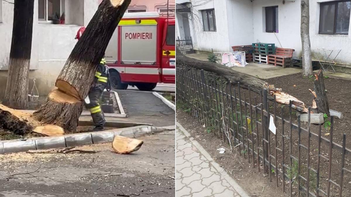 În municipiul Botoșani, vântul a scos din rădăcini un copac, iar oamenii au alertat imediat pompierii, care au reușit să taie crengile și să înlăture pericolul.