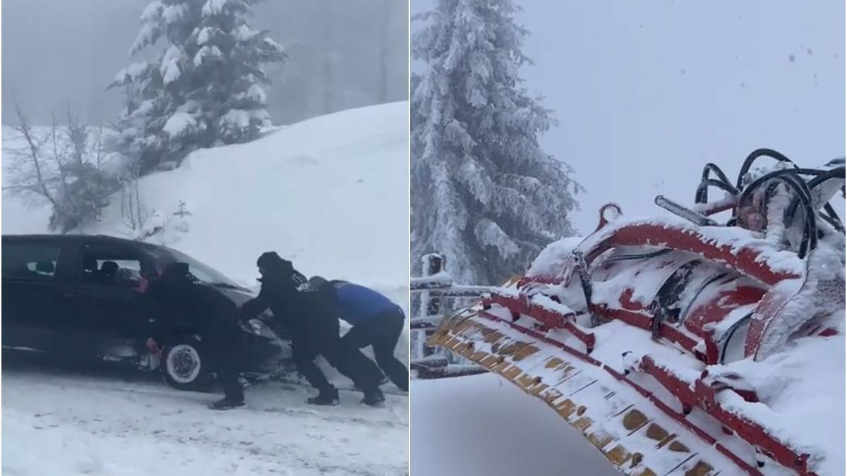 Două ore le-a luat jandarmilor, ajutați de voluntari, să scoată autoturismul acela din nămeți și să-l aducă înapoi pe șosea. Apoi au escortat mașina plină cu copiii până la destinație.