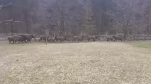Chiar dacă sunt masivi, zimbrii sunt foarte sprinteni și chiar pot sări garduri înalte, așa cum puteți observa în filmarea făcută în Parcul Natural Vânători Neamț de colegul nostru Ioan Mihuț.