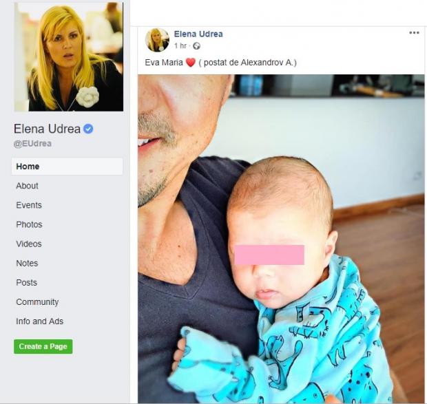Adrian Alexandrov are grijă de fetița lor și de afacerile familiei, dar administrează și contul de Facebook al Elenei Udrea. Acesta a schimbat, marți seară, fotografia de profil a Elenei Udrea și a avut grijă să posteze și o imagine cu fiica lor, Eva Maria.