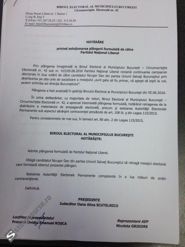 Biroul Electoral Municipal a decis că şeful USB a greşit şi că trebuie să şteargă filmuleţul de pe site-ul de socializare, scrie stiripesurse.ro.