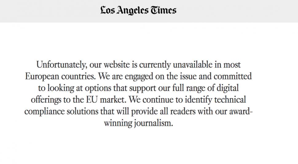 Chicago Times și Los Angeles Times au fost printre cei care au postat mesaje spunând că în prezent nu erau disponibile în majoritatea tărilor europene. CNN și New York Times nu au fost printre cele care afectate. The Washington Post și The Washington Time au fost printre cele care au cerut utilizatorilor din UE să accepte noii termeni.